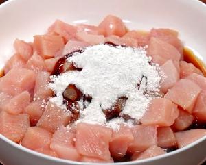 Season the sliced chicken breast with salt, a splash of light soy sauce, oyster sauce, sugar, pepper, cooking wine, and cornstarch. Mix thoroughly, then add a spoonful of cooking oil to lock in moisture. Marinate for about 20 minutes.