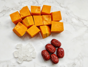 Combining pumpkin with red dates allows their nutritional components to complement each other, and this combination works to nourish the blood and replenish qi. Meanwhile, red dates also have a calming effect on the nerves and help relieve insomnia symptoms.