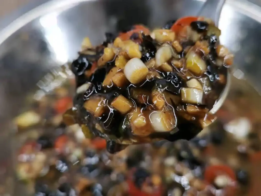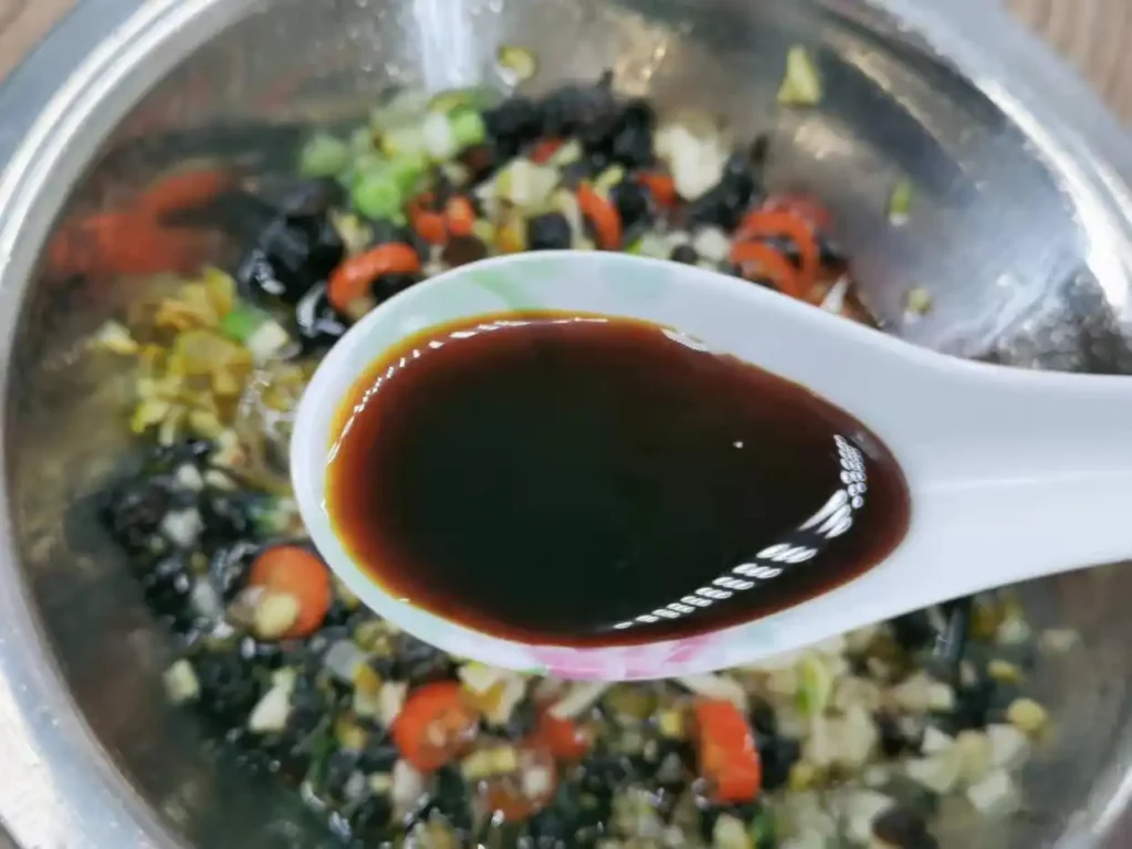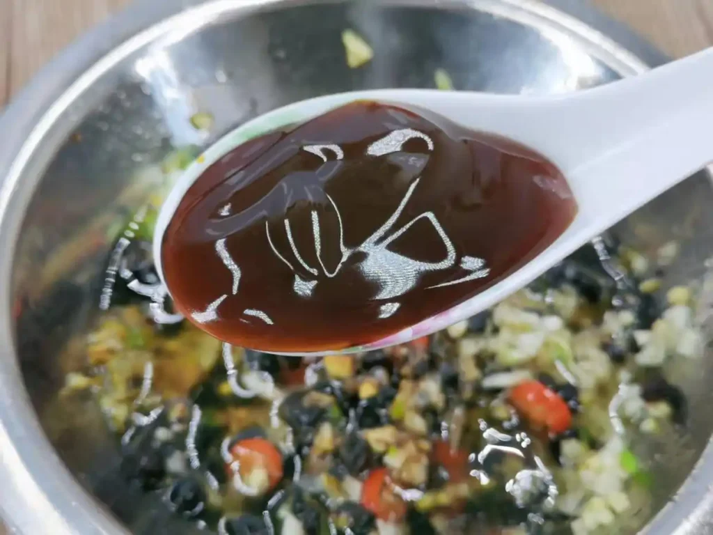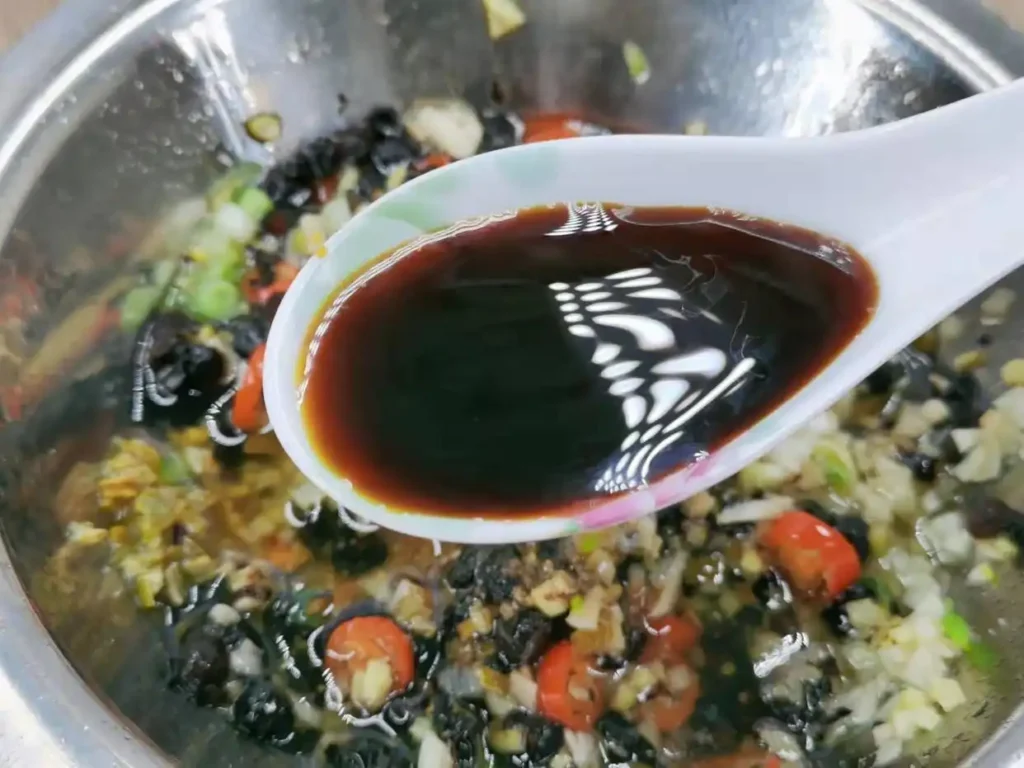 12. Then, thoroughly mix all the ingredients and seasonings together. A simple homemade soy sauce sauce is ready. This soy sauce sauce can be used for all soy sauce sauce-based dishes, such as steamed fish head, steamed pork ribs, steamed chicken, and steamed chicken feet, without any issues. It’s suitable for all of them.