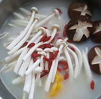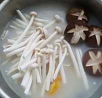 Add the shimeji mushrooms and shiitake mushrooms into the pot together.